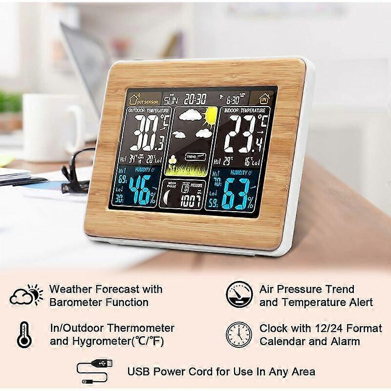 Wireless Indoor Outdoor Thermometer Weather Station, Digital Hygrometer Barometer Sensor, Color Display Weather Forecast Stations with Clock and Adjus