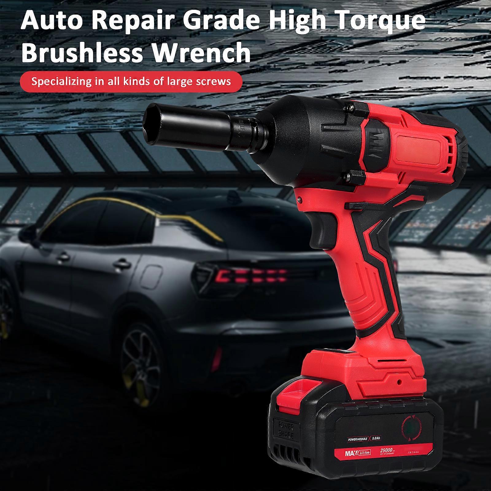 Cordless Impact Wrench 600N.m High Torque Brushless Motor 2100RPM 5.0Ah Li-ion Battery with Charger 7Pcs Impact Sockets Electric Impact Driver for Car Home Features: 【Upgraded Brushless Powerful Motor】Compared with brushed motors, brushless motor have strength in better performance and longer durability, with less noise and no sparks. Power impact wrench has a high torque of up to 600N.m and the max speed is 2100RPM, helping you easily loosen or tighten various types of bolts or nuts, including nuts or screws for truck, automobile, scaffolding, etc.  【5.0Ah Li-ion Battery & Battery Indicator】Have rechargeable lithium-ion battery to minimize downtime, ensuring you can get back to work swiftly. LED Indicator to quickly check battery power status and when it needs to be re-charged. 【2 Variable Speed】The bottom switch of this Electric impact wrench can set 3 speeds of 0-900/0-2100RPM to meet various working demands.  【Forward & Reverse】Forward & reverse, control in your hands, whether you're left-handed or right-handed. In the reverse mode, you can choose auto-brake mode to prevent the screws and nuts from falling out. 【LED Light Built-in】Equipped with LED work lights, our cordless impact wrench will automatically light up your working area when you press the switch trigger, which helps improve your visibility when working in the dark. Specifications: Plug: EU / US / UK (Optional) Battery Quantity: 1 Pcs / 2 Pcs (Optional) Material: ABS+Steel Rotation Speed Gear: 2 gears (0-900-2100r/min) Impact Frequency: 0-3100IPM Maximum Torque: 600N Power Module: 5.0Ah Item Size: 185 * 67 * 210mm / 7.28 * 2.63 * 8.26in Item Weight: 1783g / 3.93lb Package Weight: 5080g / 11.19lb Package Size: 41 * 30 * 11cm / 16.14 * 11.81 * 4.33in Package List: 1 * Impact Wrench 1 * Batteries or 2 *  Batteries (Optional) 7 * Impact Sockets (10mm, 12mm, 14mm, 17mm, 19mm, 21mm, 22mm)  1 * Drill Chuck Connector 1 * Batch-Head Converter 1 * Drill Chuck 3 * Batch Head 3 * Dovetail Nail Head 1 * Latch 2 * Screw 1 * Charger 1 * Straps 1 * Tool Case 1 * User Manual (English)