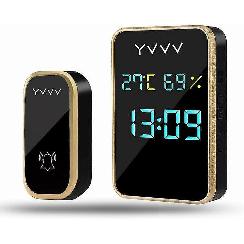Wireless Doorbell, Waterproof and Self-Powered Wireless Outdoor Doorbell without Battery, Displays Temperature, Humidity and Time, Wireless Chime with