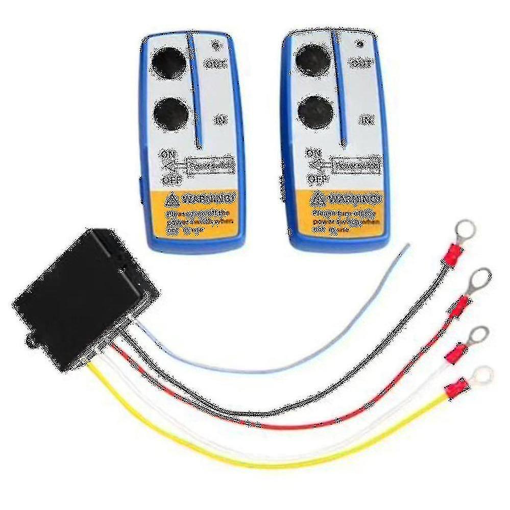 Wireless winch remote control with twin handset.Will work with any 12 volt solenoid operated winch.Latest heavy duty long range modelVisual indicator light shows remote operation2 remotesDistance: about 150ftPower voltage:12Vcolour:Blue+yellowMaterial:plasticsize:Remote size:about 45 x 105 mmReceiver size: about 45 x 60 mmPackage Contents:2 x Remotes1 x ReceiverOnly the above package content, other products are not included.Note: Light and different displays may cause the color of the item in the picture a little different from the real thing. The measurement allowed error is +/- 1-3cm.