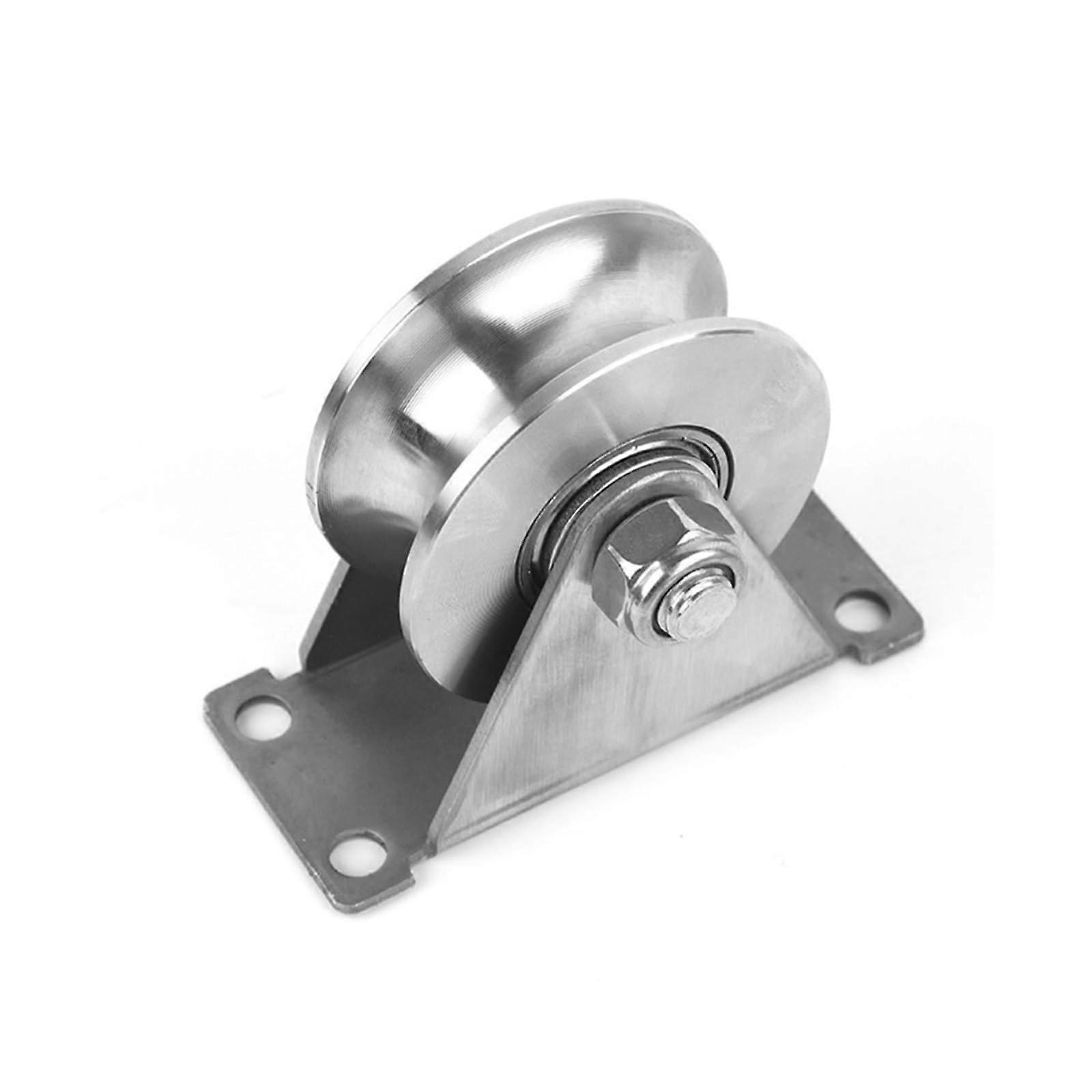 Grooved pulley sheave, Ushaped groove pulley made of stainless steel for wire rope rails with 4 x 7 mm mounting holes.