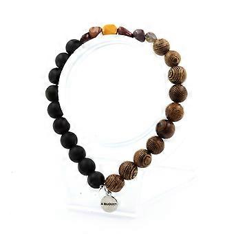 Australian Mookaite Bracelet + Matte Black Onyx Beads + Wood 8 mm