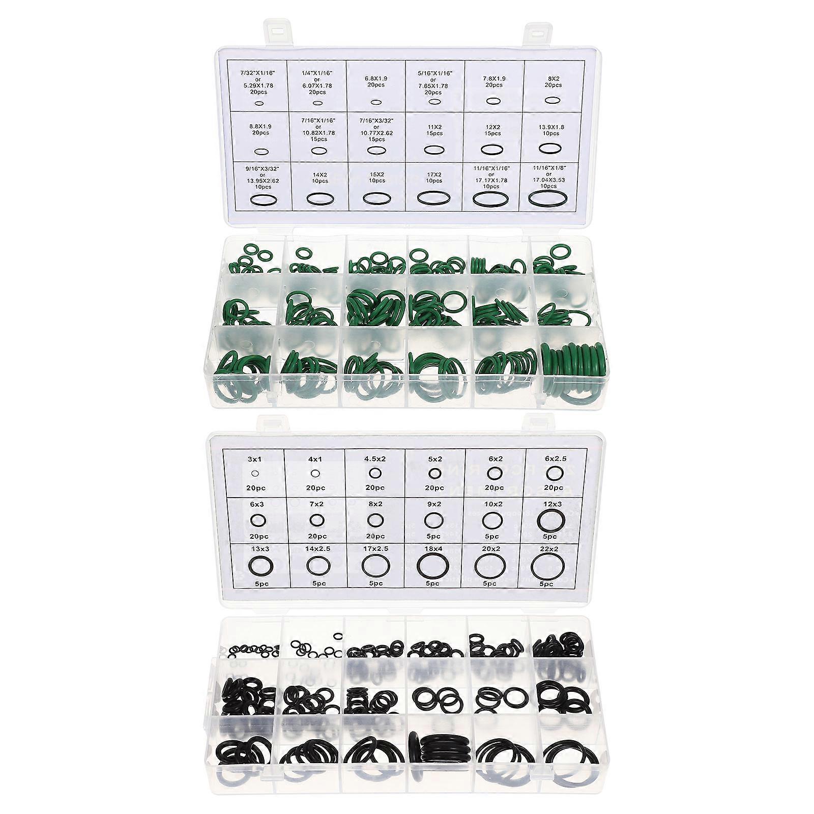 The o-rings are perfect repairing accessories for car air conditioner, , pumps, faucets, and so on, designed with good sealing performance. Different sizes of o rings are packed in assortment box for clear and orderly storage. Compact size, can be placed in the trunk of the car or the storage box in the car and does not occupy space. Features - Color: Green (270pcs) + black (225pcs). - Material: Rubber. - Size: 20.50X10.50X3.00cm;/8.06X4.13X1.18in; - Compact & portable: packed in storage cases, compact and light weight, can be placed in the trunk of the car, taking up no much space. - Wide applications: multipurpose for car, motorcycles, equipment, , ships, faucets, sinks, and so on. - Good seal: the rubber material provides you with perfect sealing performance for gas, water and any oil, no leakage, prevent fuel or water leaking. - Rubber rings: premium rubber materials, heat resistance, can work properly within -40 degree centigrade (-40°F) - 120 degree centigrade (248°F), long serving time. - : all accessories are stored in the assortment boxes, clearly sorted by sizes, easy access when needed anytime. Package list: 495 x Rubber O Rings