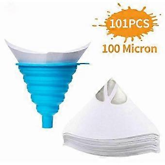 Automotive Paint Filter Paper Silicone Funnel Set Safe Large Size Car Paint Paper Strainers Funnel Kit Blue 100pcs Paper Funnel 1 Silicone Funnel