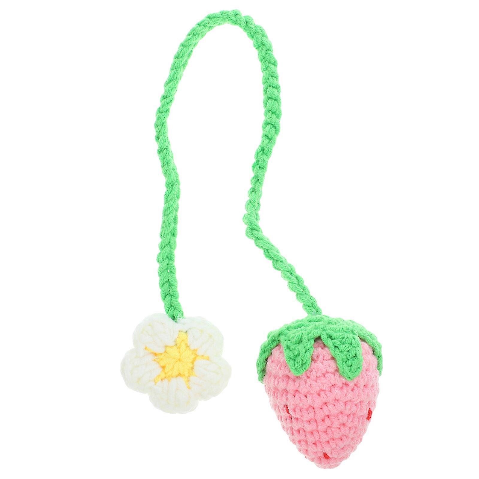 Car Hanging Ornament Car Mirror Hanging Charm Accessory Crochet Strawberry Flower Pendant