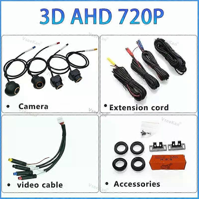 Car 360 view Camera compatible for Android Radio multimedia with built-in 360App 8K HD 3D AHD1080P 720P Car Camera Golden fisheye lens