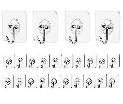 Adhesive Hooks Kitchen Wall Hooks 24 Packs, Heavy Duty 33lb Nail Free Sticky Hangers with Stainless Hooks Reusable Utility Towel Bath Ceiling Hooks 20