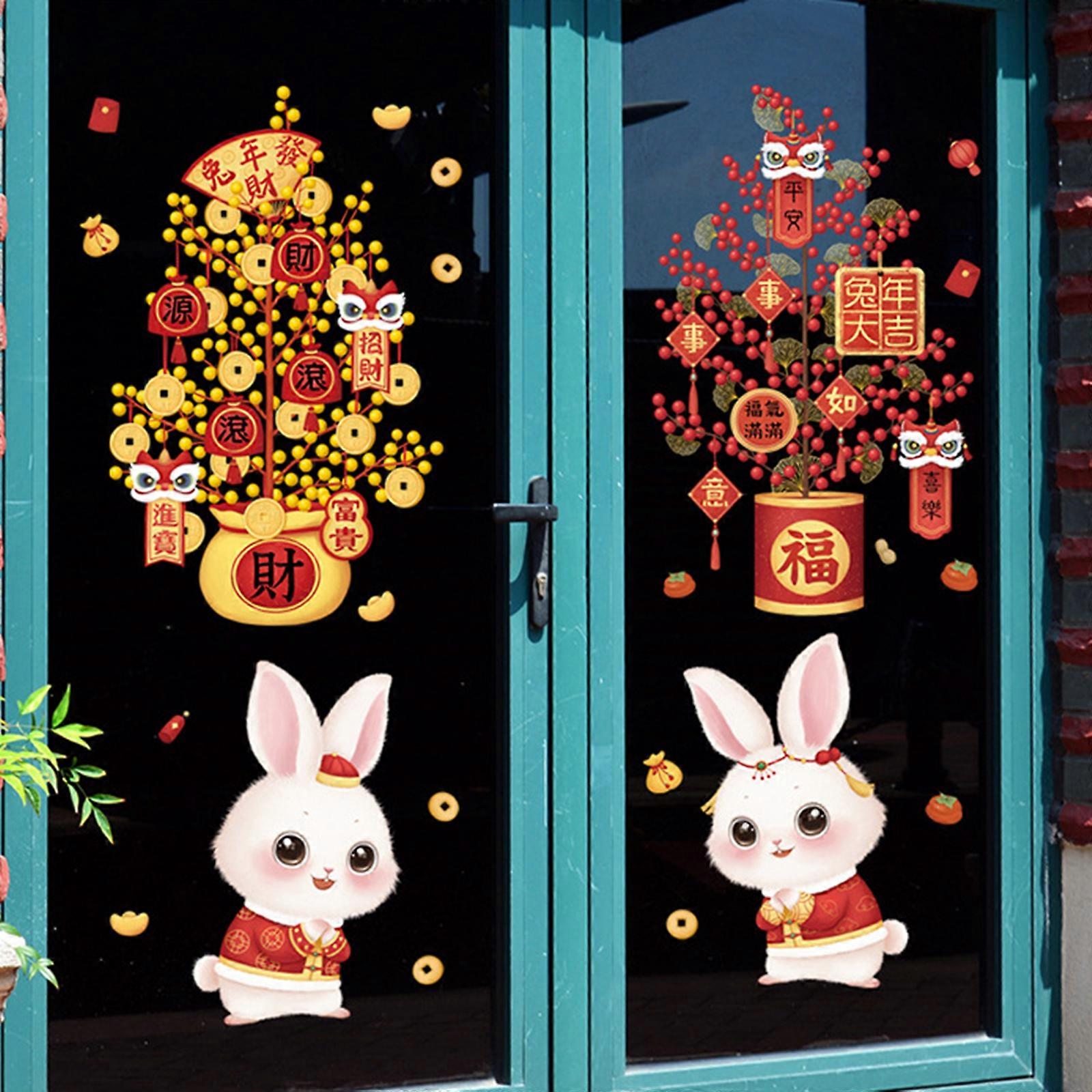 Wall Sticker Home Stickers Year Of Rabbit Spring Festival Decor PVC DIY Office Dual Sided Print 2023 School Window Decal 100% New