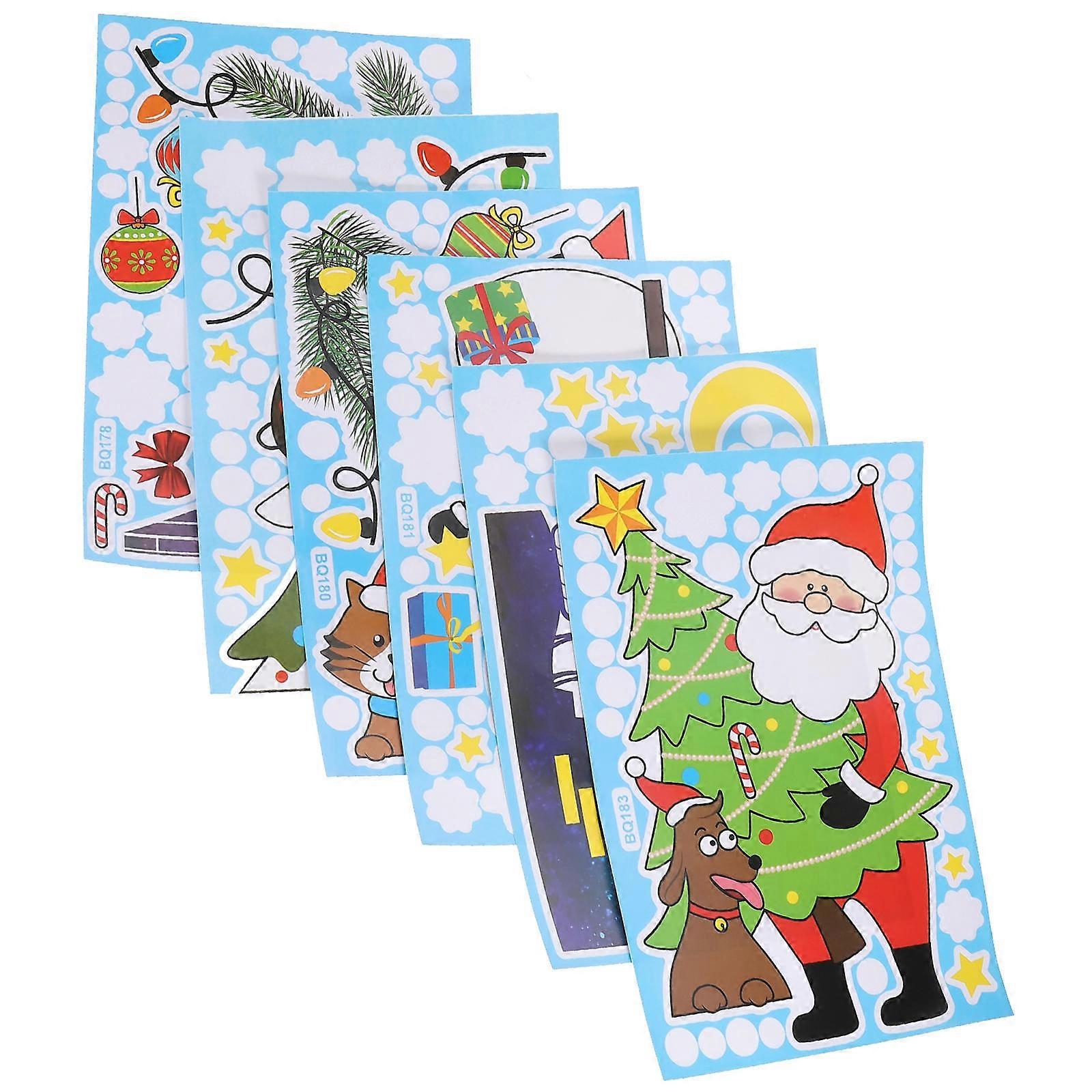 Xmas Elements Wall Stickers Decorative Pvc Assorted Color for Smooth Surface Decor 6sheets