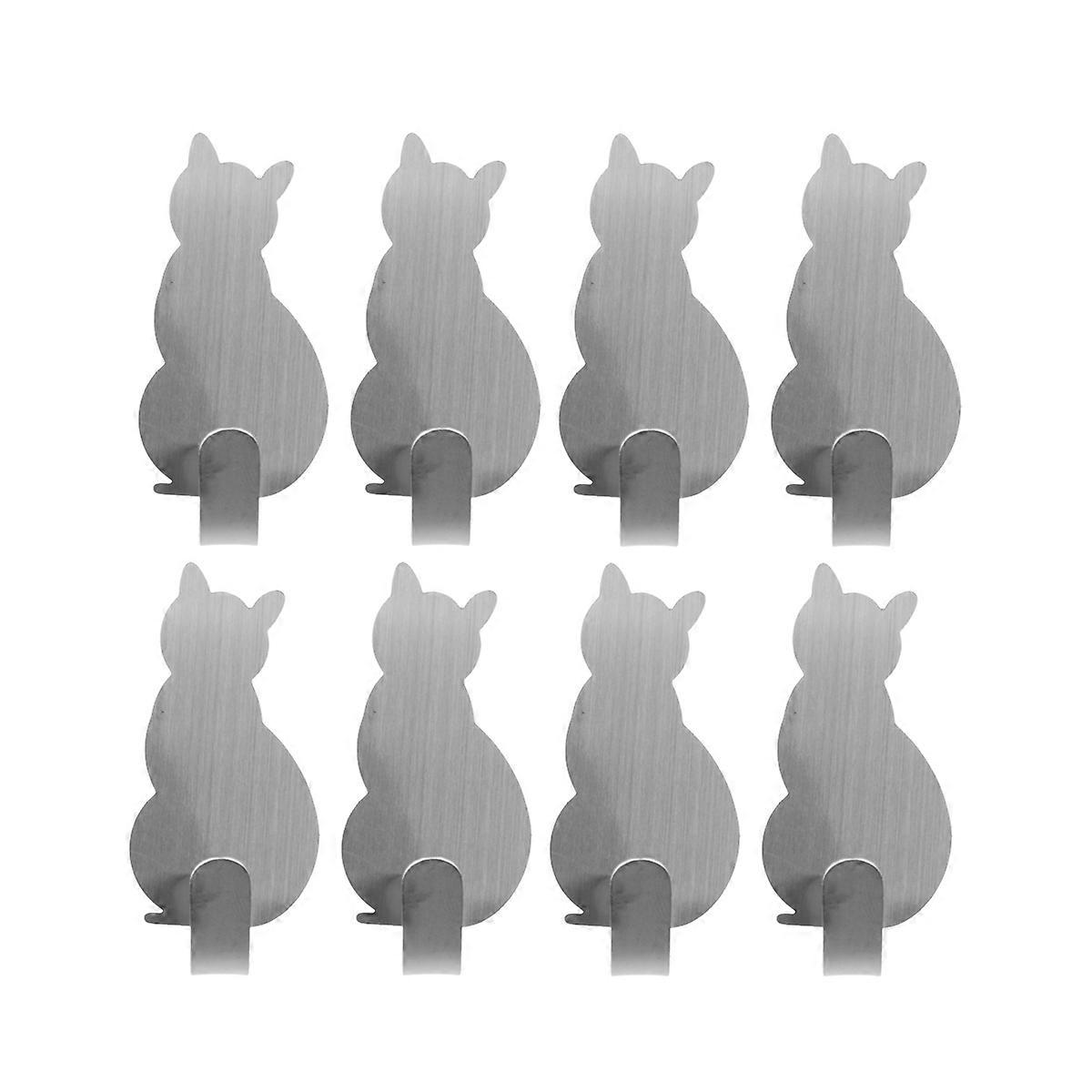 Adhesive Hooks Cat Shaped Stainless Steel Wall Hanger for Holding 24Pcs Silver