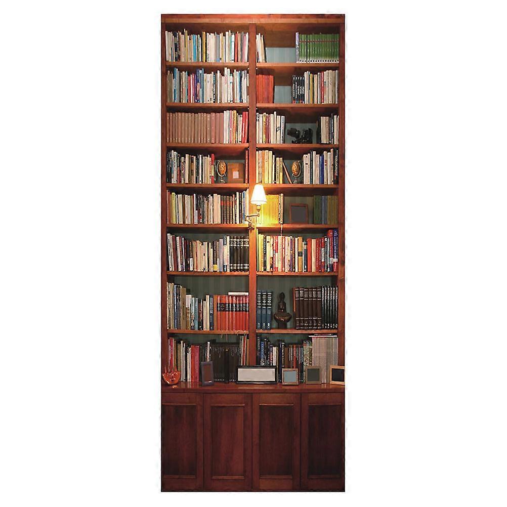Self-Adhesive Door Sticker Retro Book Cabinet Imitation 3D Door Stickers DIY Mural Chocolate PVC Waterproof Wall Stickers 200 x 77 x 0.03cm 2Set