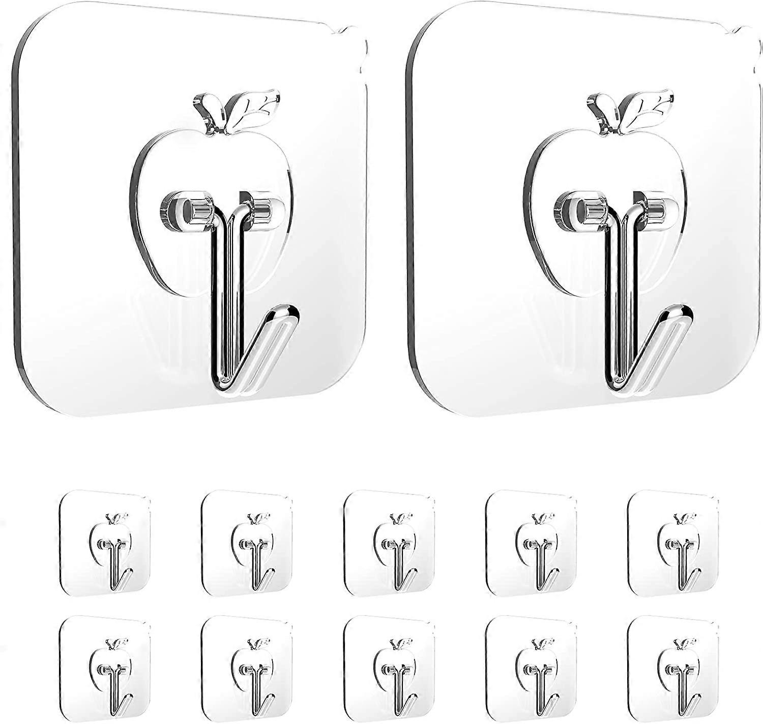 Adhesive Hooks for Hanging Heavy Duty Wall Hooks Reusable Removable Waterproof Bathroom Hooks Transparent Sticky Hooks for Kitchen Glass Door12pcs)