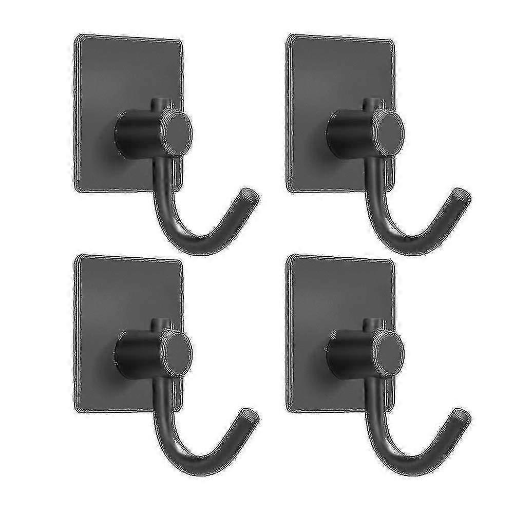 Self Adhesive Wall Hooks, Pack of 4 Black Stainless Steel, Strong Adhesive for Kitchen Bathroom Towel Keys