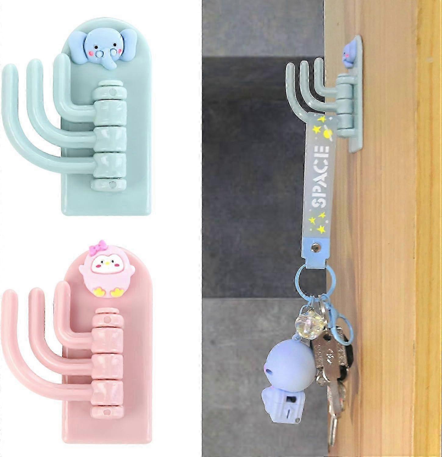 Self Adhesive Hooks Cute Cartoon Key Holder 2 Pcs Wall Hanging Plastic Creative Cute Hooks Seamless Adjustable Swivel Key Hook, Plastic Duty Sticky on