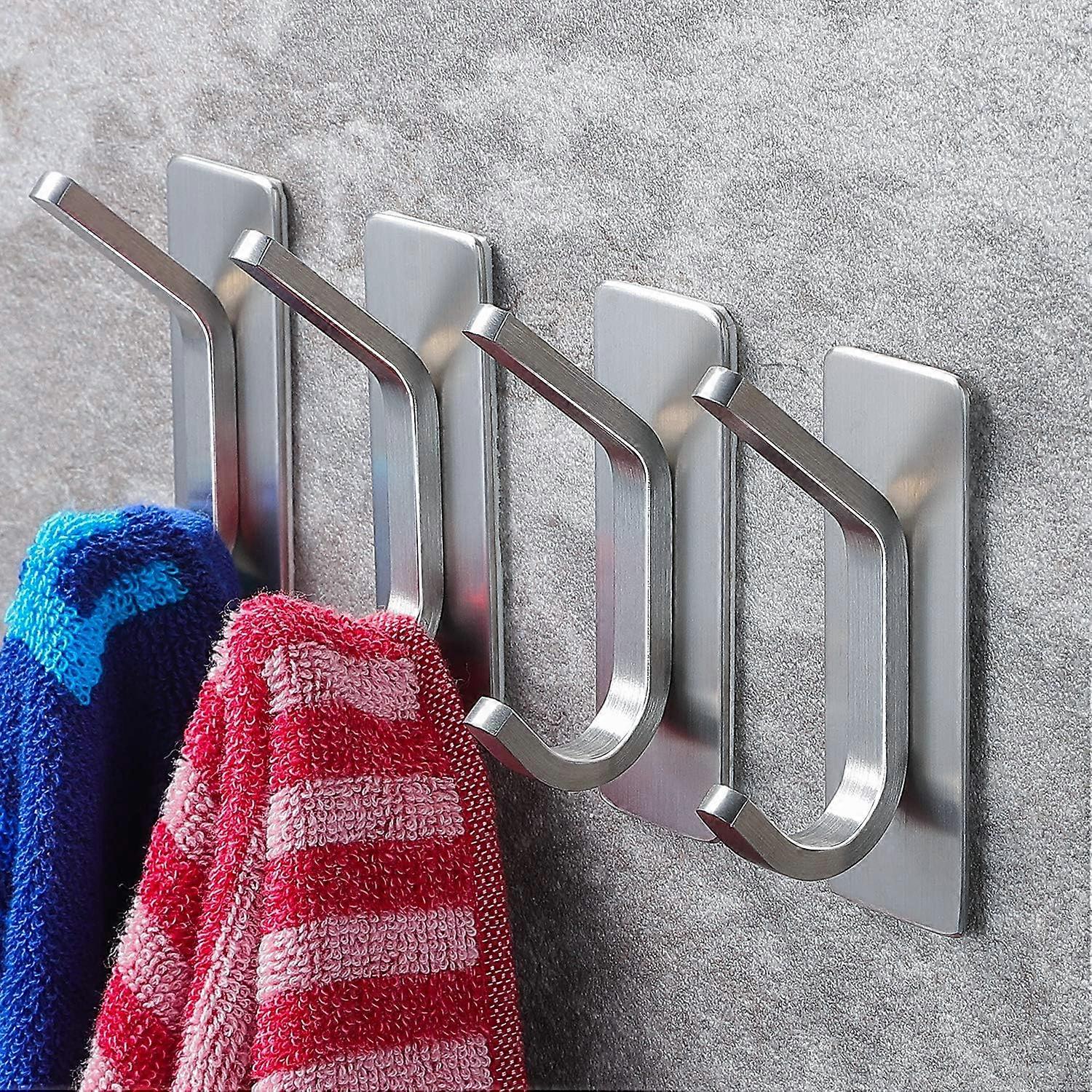 Adhesive Hook - Self Adhesive Hook/Coat Sticky Hooks for Kitchen Bathrooms4pcs)(silver)