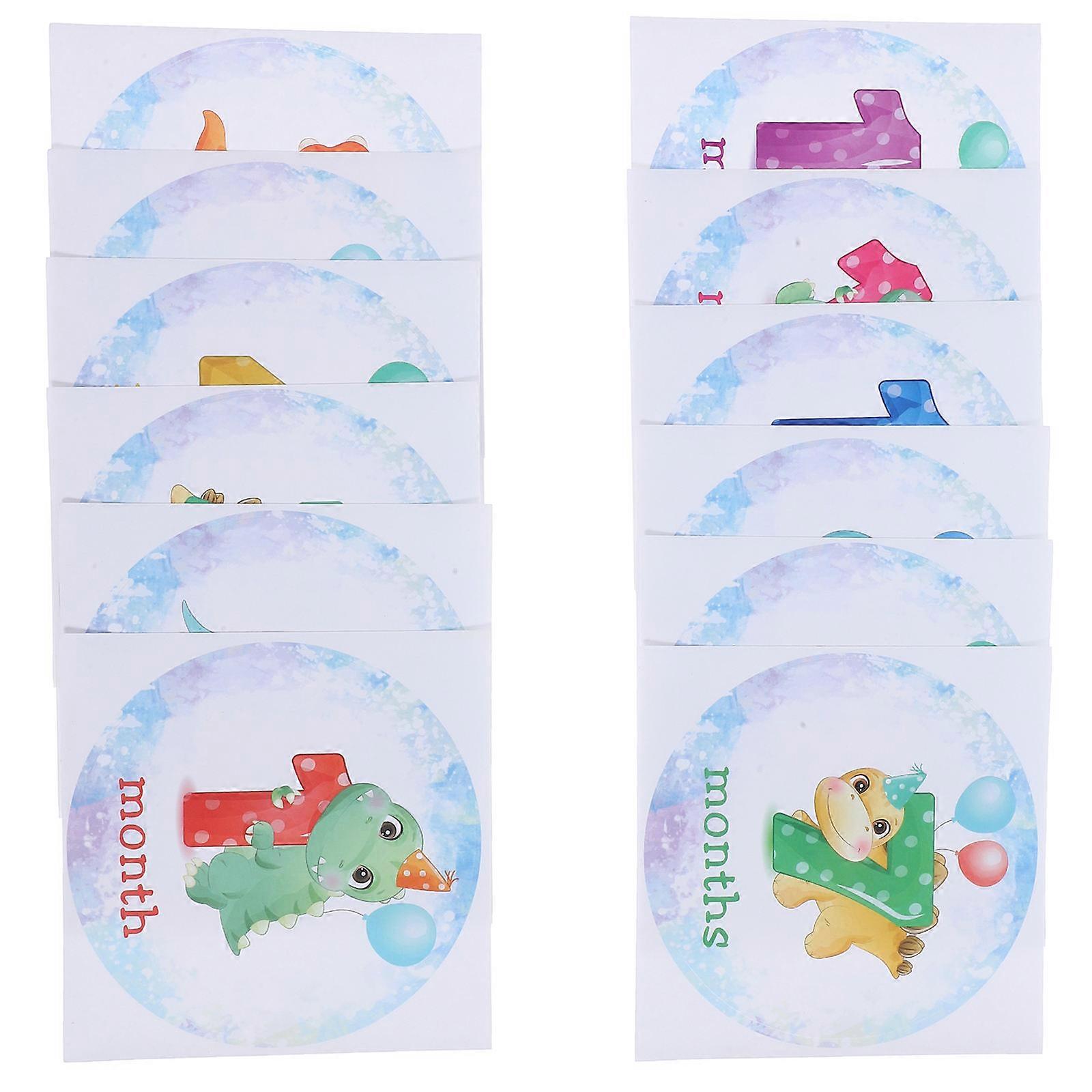 Baby Month Signs Newborn Month Sticker for Photo Session Assorted Color Copperboard Adhesive for Commemorative 12Pcs