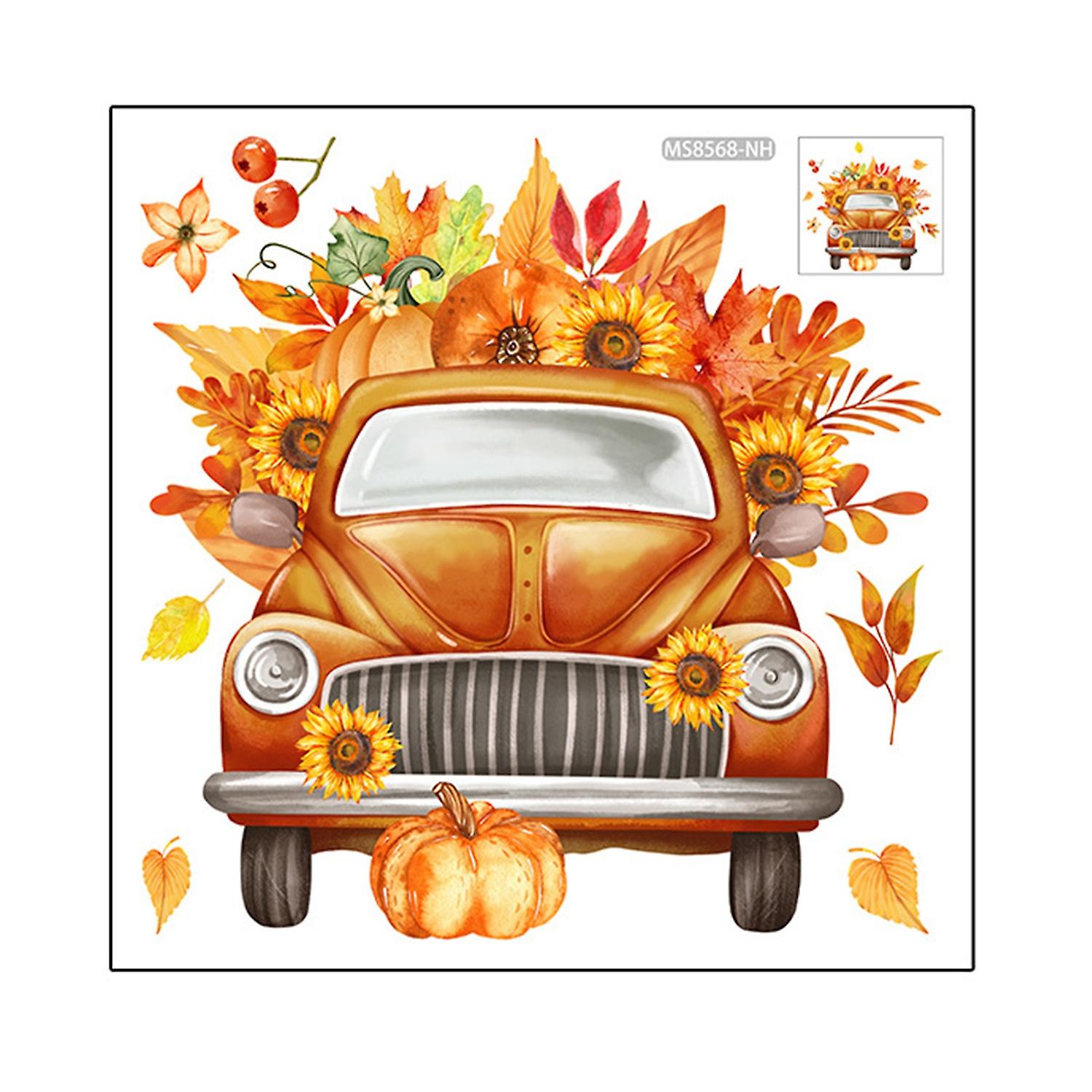 Toilet Sticker Cartoon Turkey Maple Print Thanksgiving Bathroom Decoration Toilet Decal