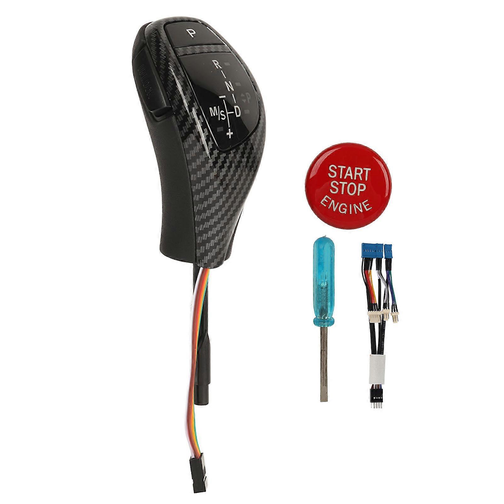Automatic Gear Shift Knob Red Start Button LED Electronic Car Lever Handle Shifter Head Fit For 5 Series E60 E61 Carbon Fiber Style E2U313