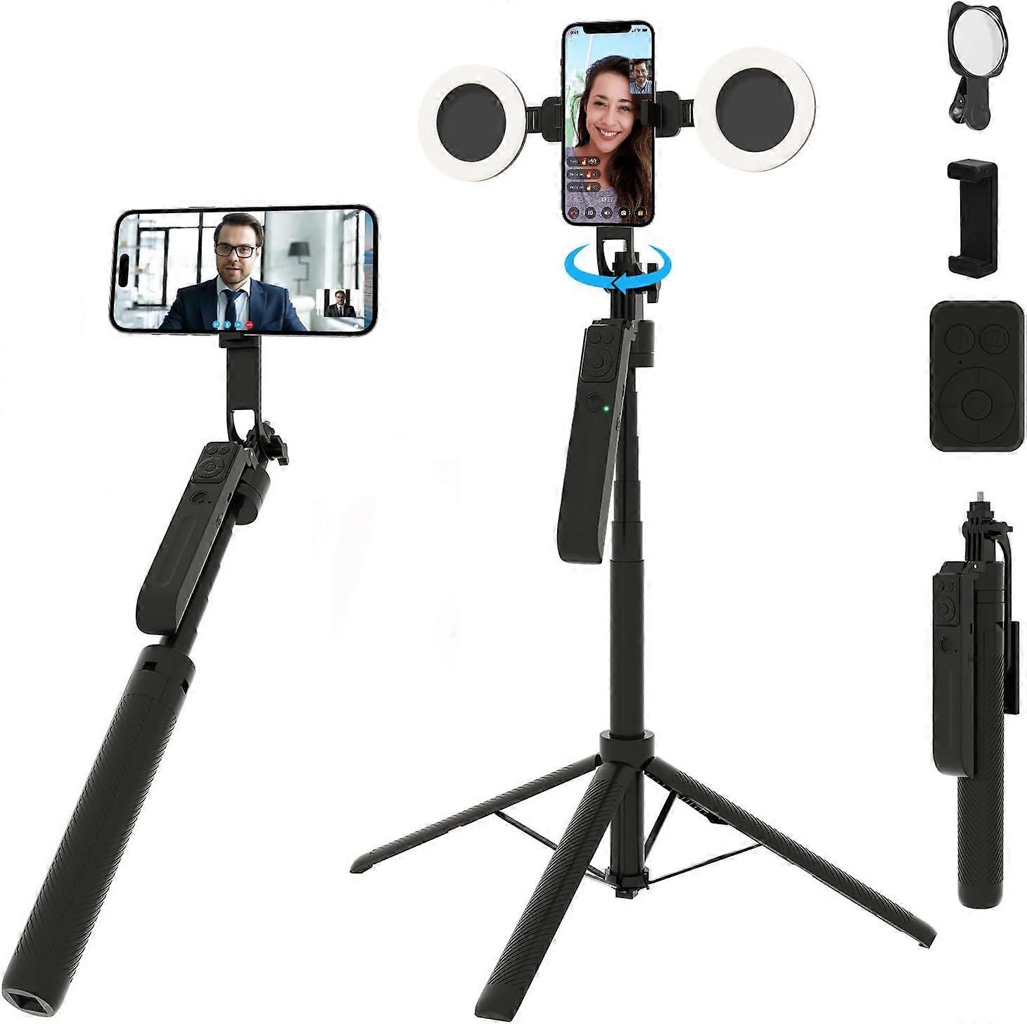 Automatic Face Tracking Selfie Stick Tripod with Fill Light, 360 Degree Rotation