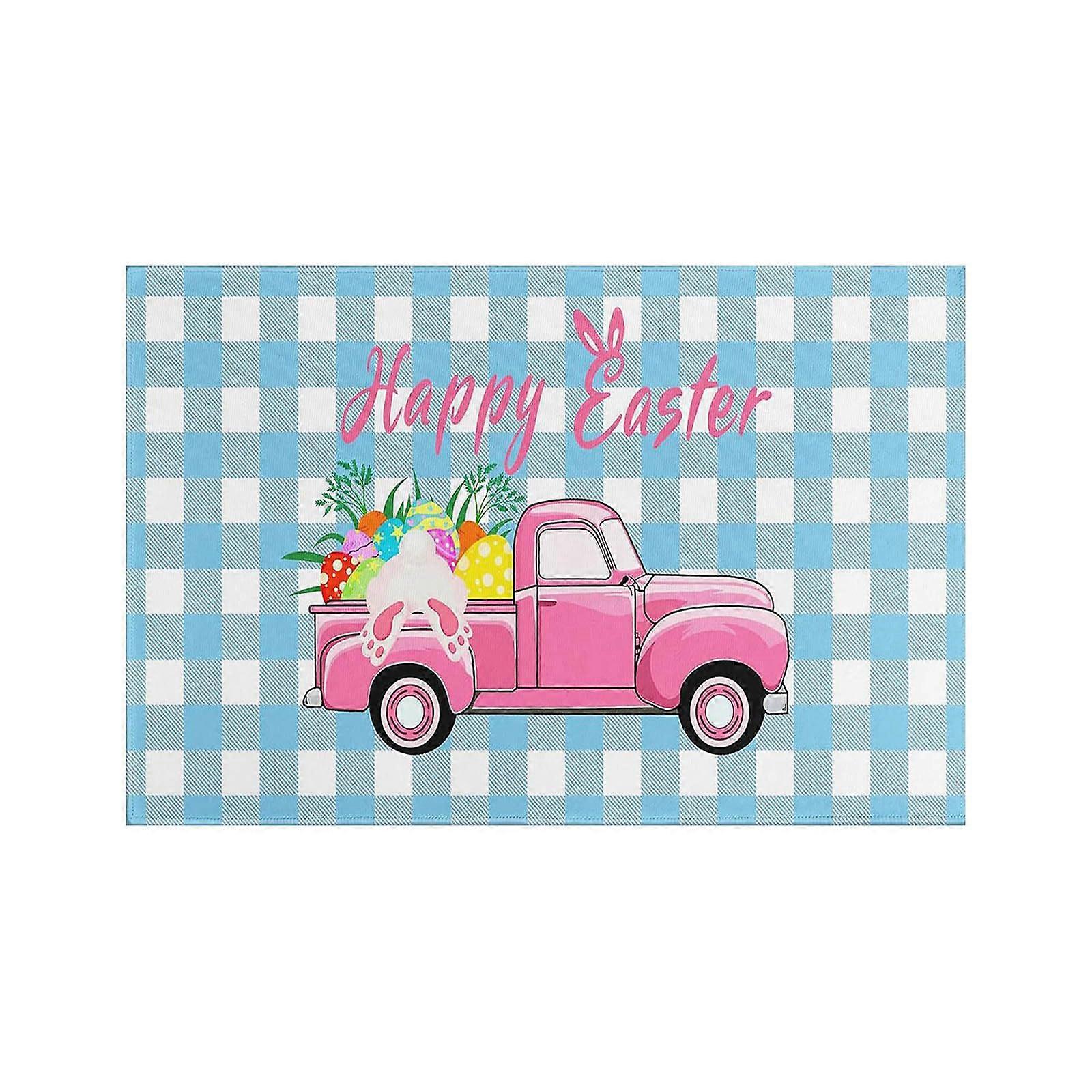 Fluffy Bathroom Mat with Easter Bunny Design, NonSlip, Sky Blue 40x60cm