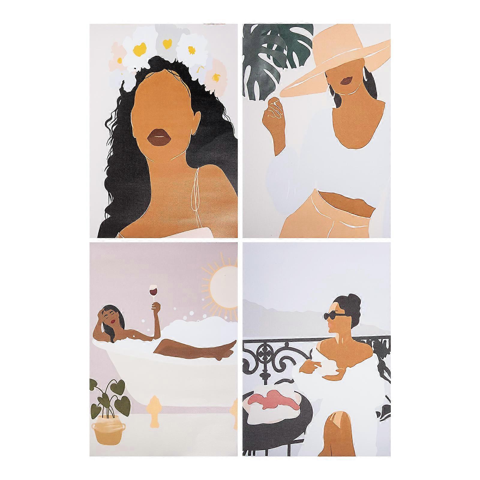 African Women Wall Painting for Decor 16Pcs Living Room Canvas Set