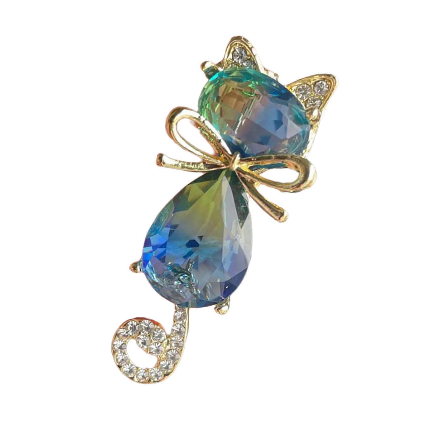 Sparkling Kitty Shaped Brooch Artistic Crystal Detailing Alloy Jewelry Piece Versatile Fashion Statement For Adults Multicolor