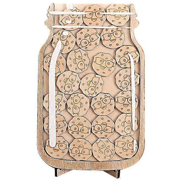 Reward Jar for Positive Behavior - Wooden Jar with 25 Cartoon Cookies for Kids