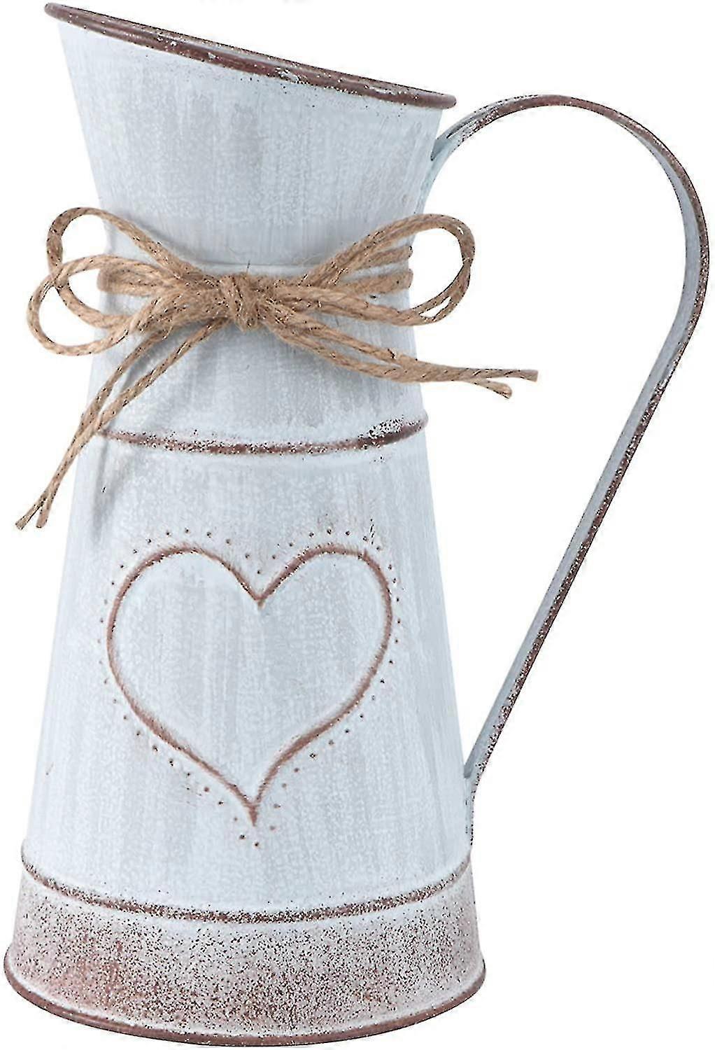 Metal Flower Vase, Rustic Jug Vintage Vases With Heart Design