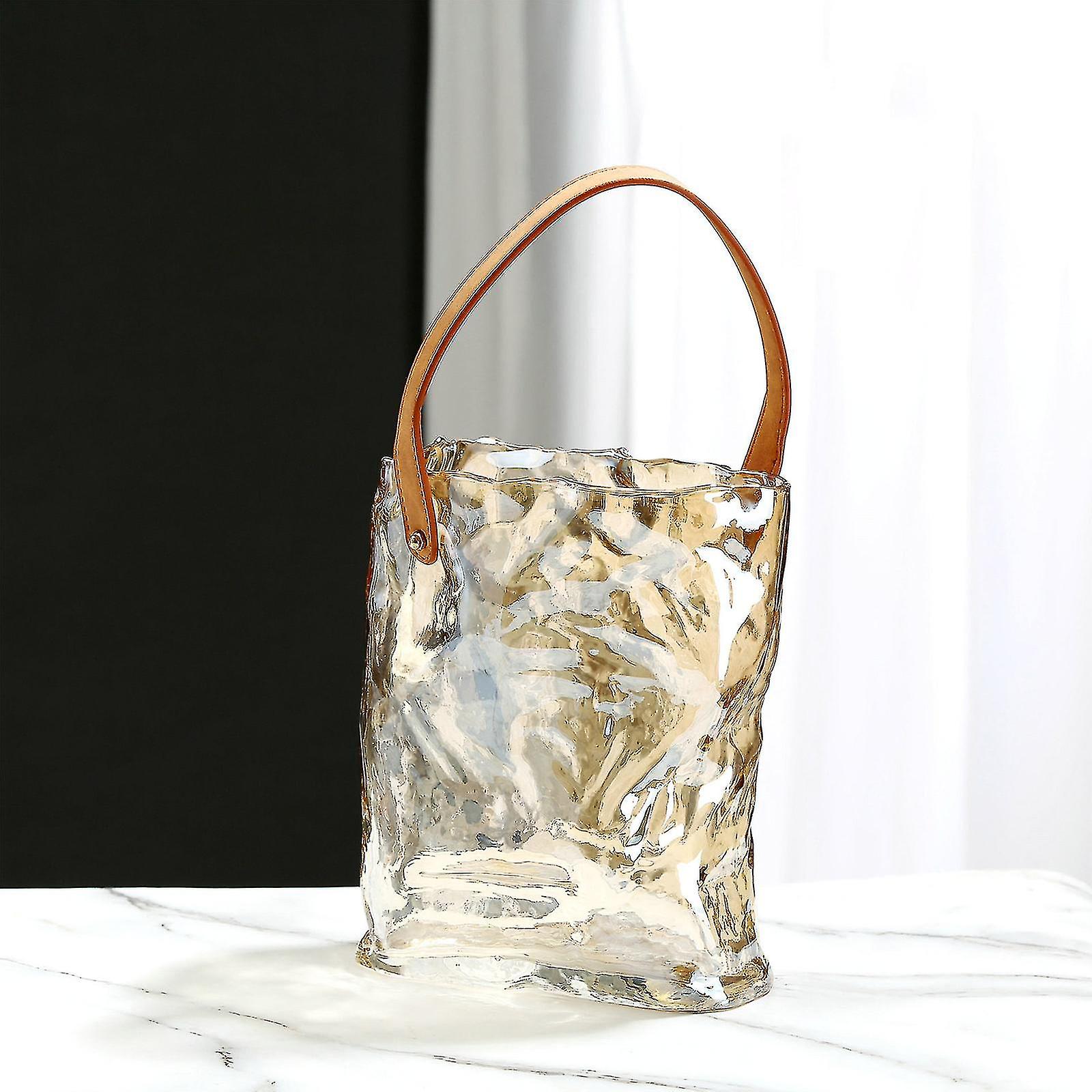 Purse Vase For Flowers (handmade) Blue Glass Bag Vase - Clear , Cool & Cute Vase For Centerpieces & Fish Bowl - Handbag Unique Flower Vase Decorative