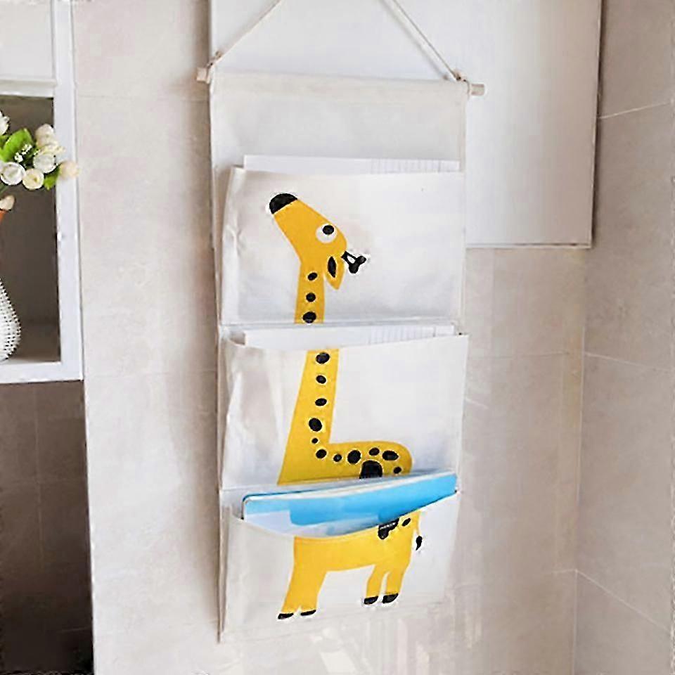 Cotton Fabric Wall Storage Bag Door Closet Hanging Storage Bag, Hanging Organizer with Pockets, Storage Bag for Kids Room/Door (Giraffe)