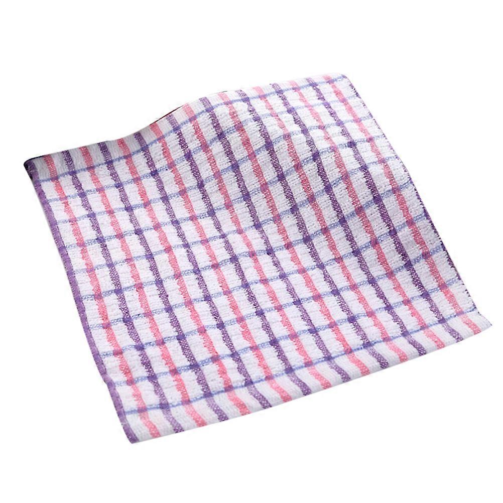 Cotton Yarn Lint-free Plaid Kitchen Rag Non-stick Oil Absorbing Tea Towel Window Glass Cloth Washable Super Absorbent Kitchen Rag (Purple)