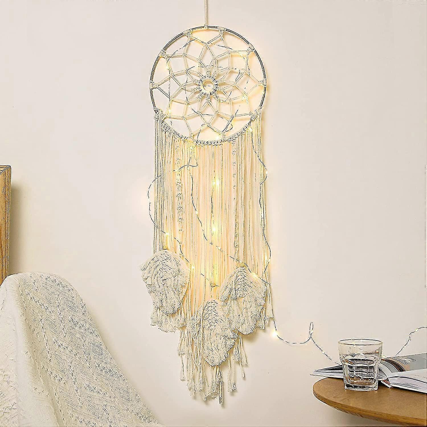 Cotton Woven Wall Hanging Moon Dream Catcher With Fairy Lights Round Tassel Wall Decor Boho Decor Tassel Home, Beige
