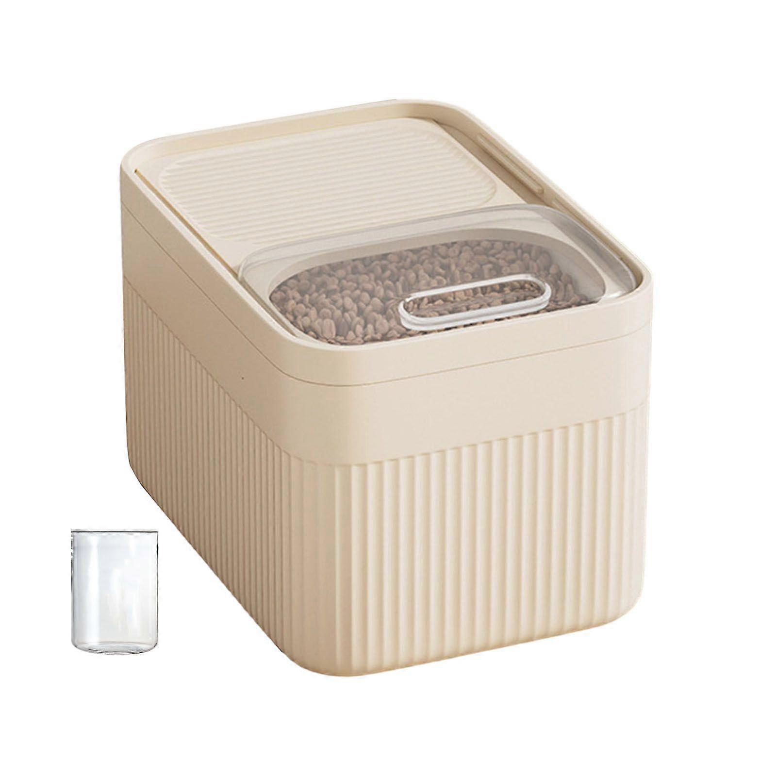 Grain Storage Barrel with Built-in Measuring Cup Clear Cover Large Capacity Wide Mouth Airtight Pet Food Container