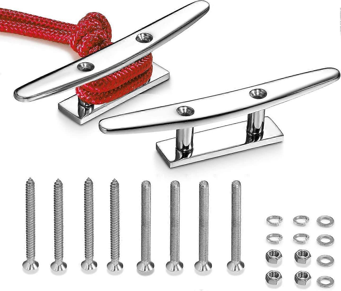 Boat Cleat 4 Inch Open Base 2 Pcs, Small Dock Cleat, Heavy Duty 316 Stainless Steel, Curtain Tie, Hook, Include Installation Screws