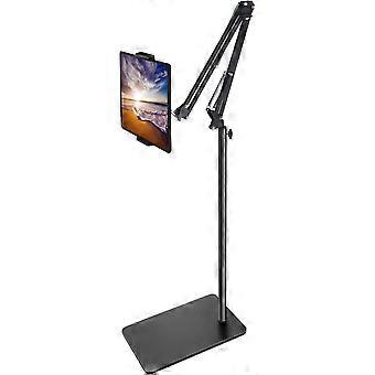 Tablet Floor Stand with Double Weight Base, Overhead Bed Phone Mount Height Adjustable Arm Stretchable Stand Holder, Compatible