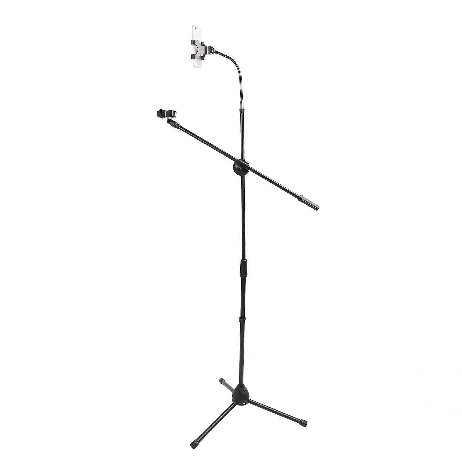 Floor Microphone Stand Height Adjustable Stable Multifunction Portable Boom Arm Mic Stand with Phone Tablet Clip Holder