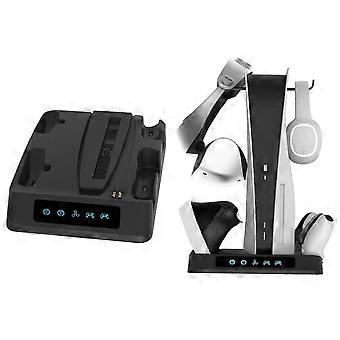 Βάση φόρτισης για PS5 και PSVR2 Πολυλειτουργική κάθετη βάση με ανεμιστήρα ψύξης και σταθμό φόρτισης δύο ελεγκτών, φόρτιση, ψύξη, επίδειξη PS5&