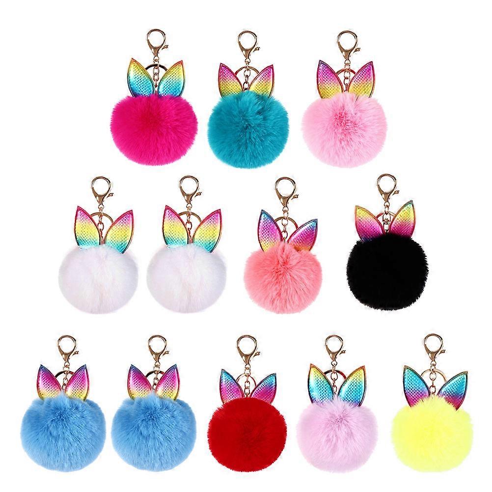 Key Decoration Furry Ball Key Chain Pendant Daily Use Assorted Color 14X8CM Bag Pendant 12Pcs