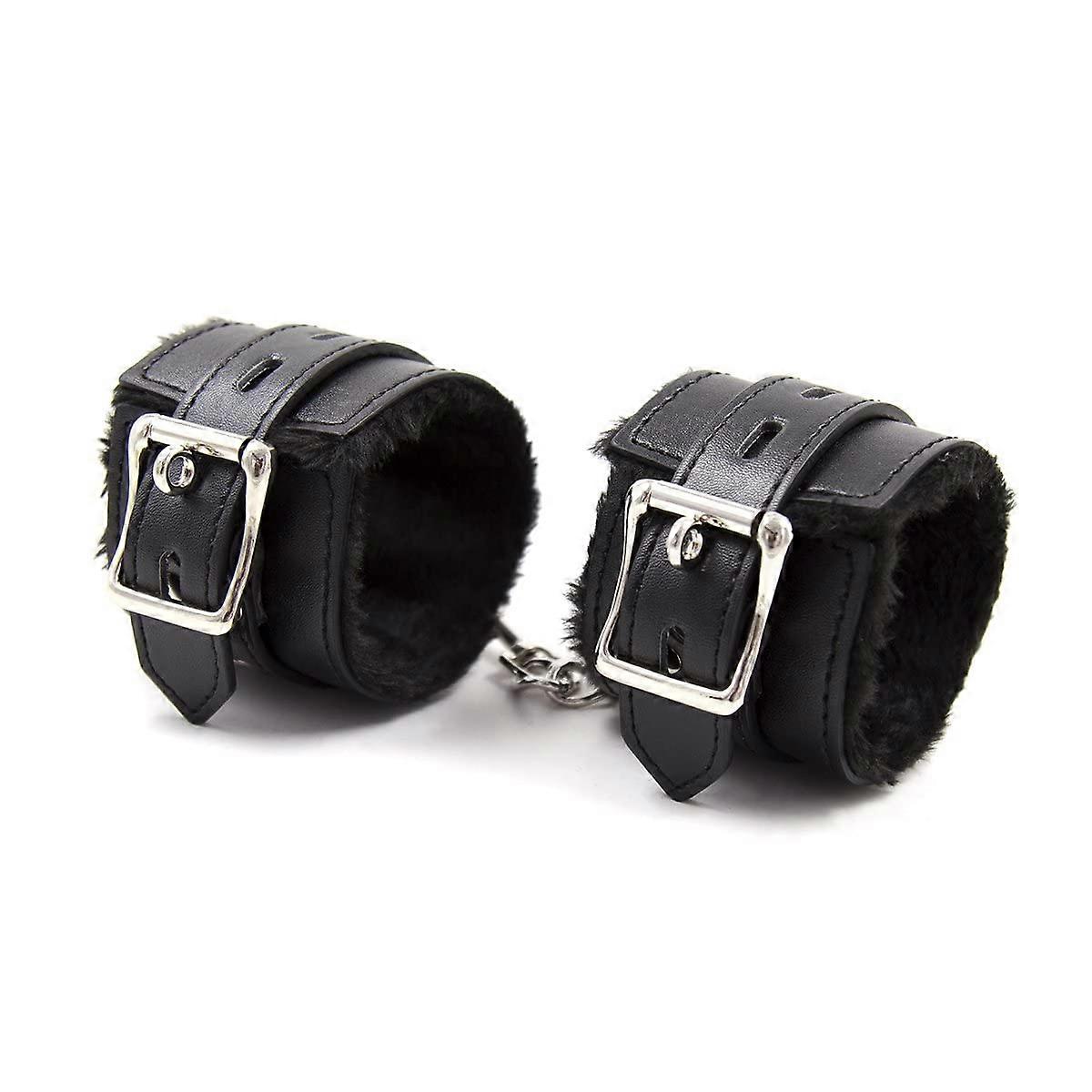 Plush Black Leather Hand Cuffs for Adjustable Wrist Fit, Unisex Design, Durable Material, Perfect for Couples
