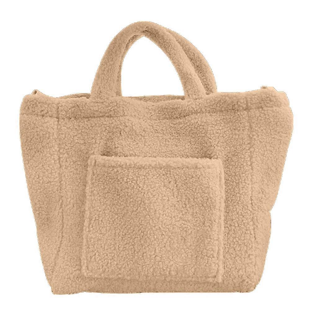 Plush Shoulder Bag Large Tote Handbag Purse Faux Fur Shopping Dating Bag Beige