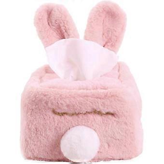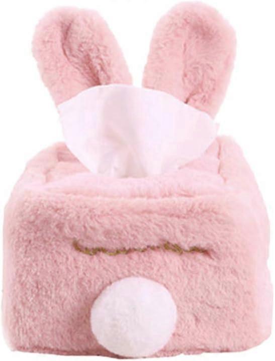 Plush Soft Tissue Box Holder Carrier Rabbit Cotton Animal Style Tissue Dispenser Box for Room Car Sofa Bedroom (Pink Square)