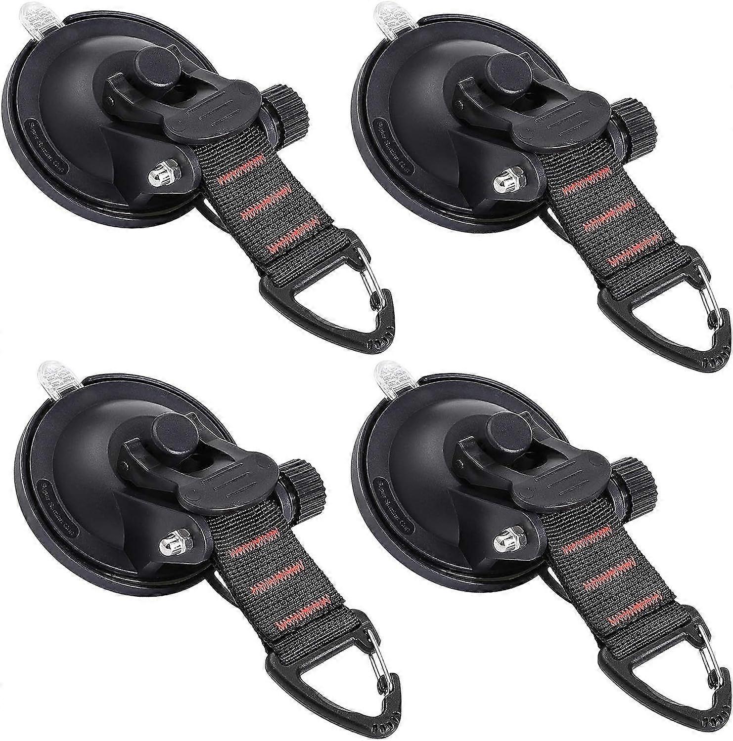 Heavy Duty Suction Cups 4 Pieces with Hooks Upgraded Car Camping Tie Down Suction Cup Camping Tarp Accessory with Securing Hook Strong Power for Awnin