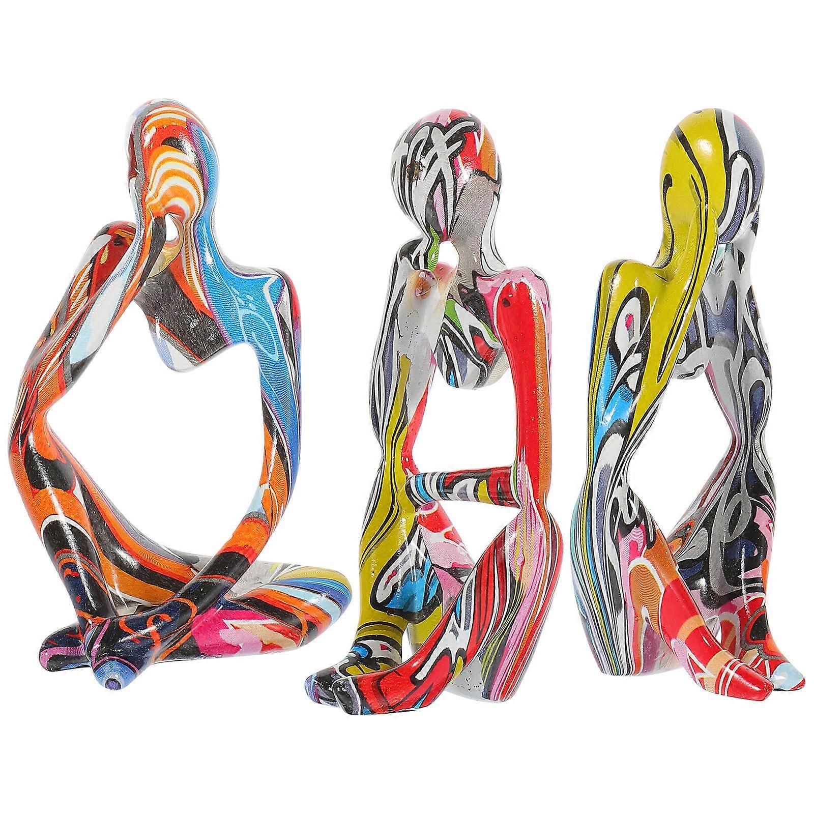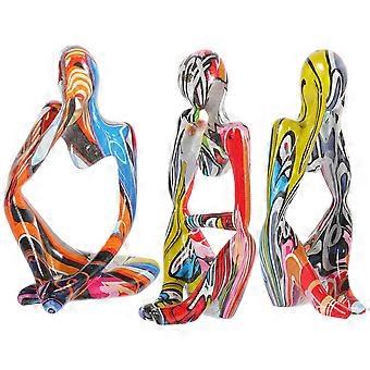 Bookshelf Sculpture Decoration Thinker Statue Abstract Art Living Room Ornament Assorted Color 3Pcs