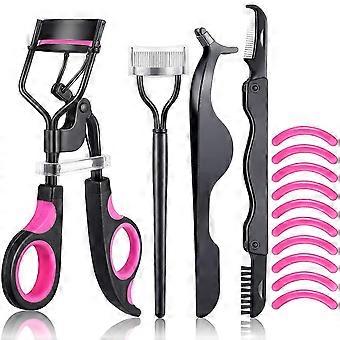 Βλεφαρίδες Curler περιλαμβάνει Lash Curler, βλεφαρίδες χτένα Seperator, τσιμπιδάκια επέκταση βλεφαρίδων, πτυσσόμενη βούρτσα φρυδιών και χτένα, 10 μαξιλάρια ανταλλακτικών σιλικόνης