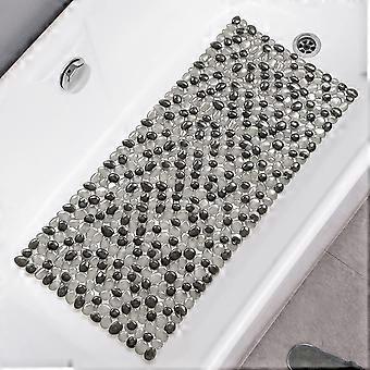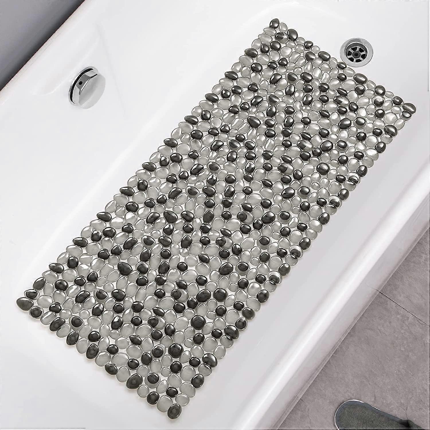 Pebble Shower Mat, Anti-Slip Machine Washable Bath Mat 35x16 with 215 Strong Suction Cups and Drain Hole, Keep Floor Clean, Bathroom with Black