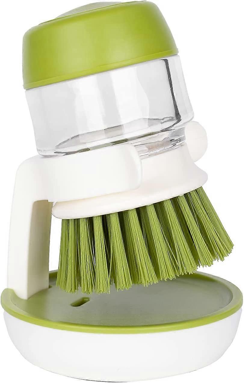 Soap Dispensing Palm Scrub Brush with Drip Tray,Kitchen Scrubber Storage Stand Set