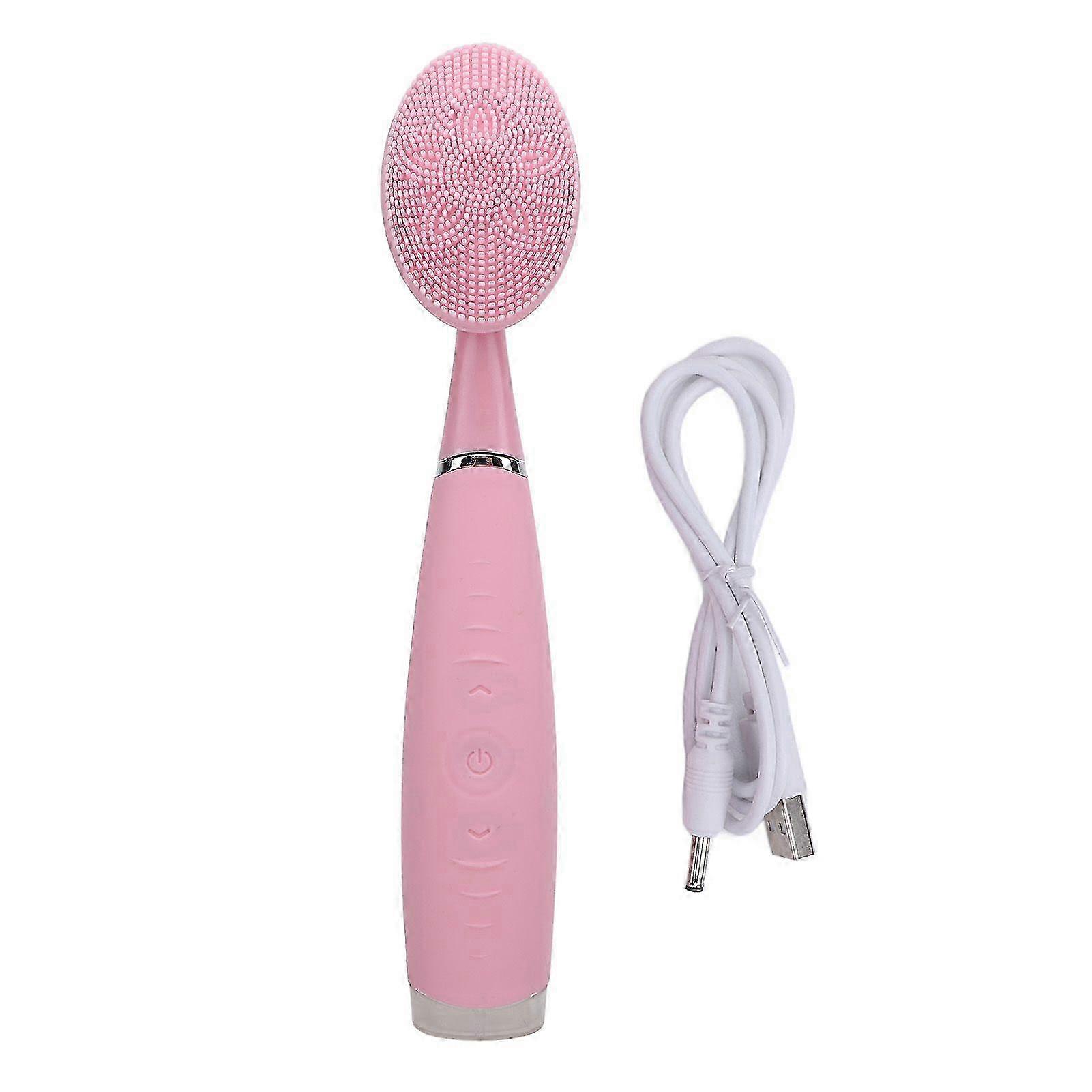 Facial Cleansing Brush Silicone Face Scrubber IPX6 Water Proof Handheld Electric Face Brush Cleanser Pink