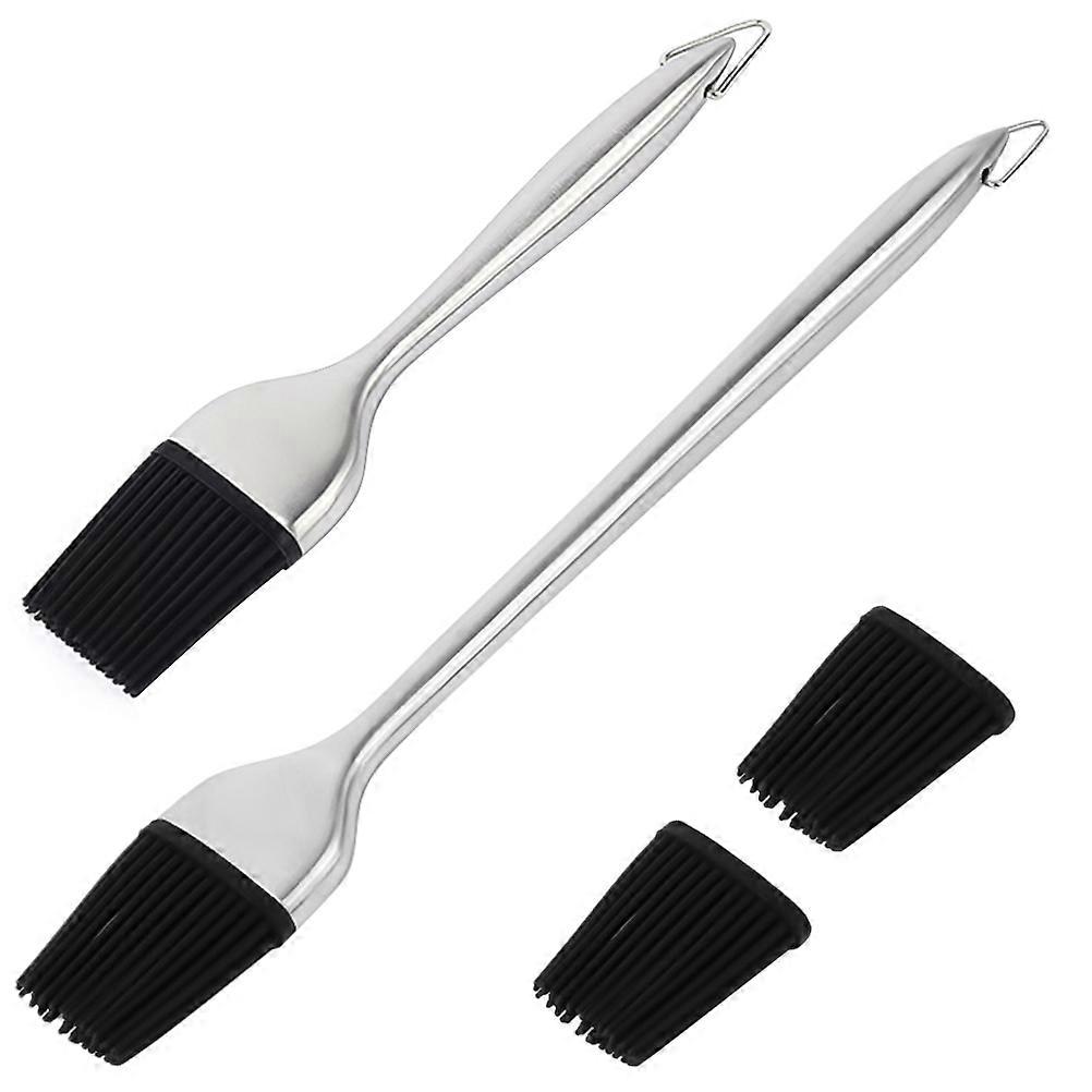 Oil Brush Cooking Baking Brush Outdoor Kitchen Accessories Silver Lightweight 2Pcs Black Silicone Brush Head