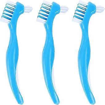Denture Cleaning Brush Denture Care Brush Double Head Design For Travel (blue) (3pcs)