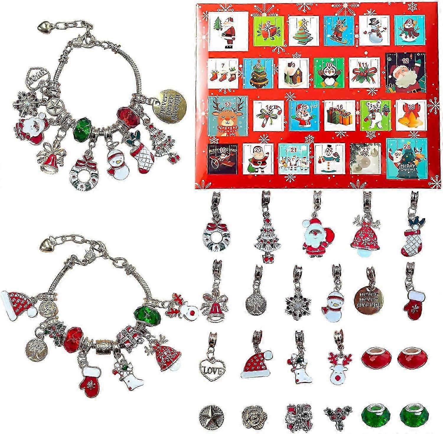 2025 Advent Calendar Bracelets, 24 Days Christmas Countdown with 22 Charm Beads 2 Bracelets, Unique Christmas DIY Jewelry Kit Gift for Kids